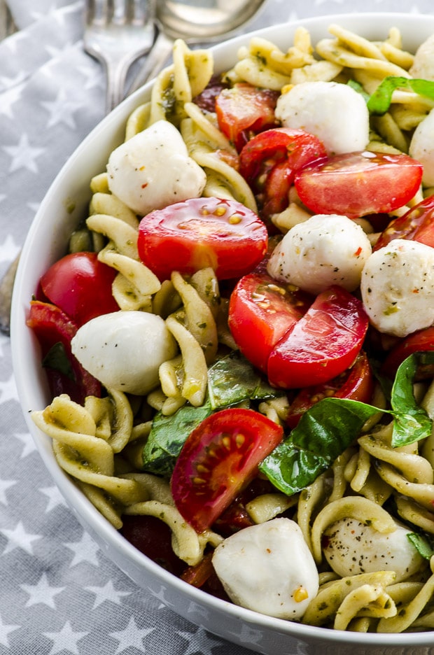 2. Stir together cooled pasta and remaining ingredients. Pesto can be drizzled over top of the salad, mixed together or omitted.