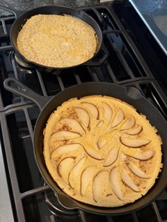 Dutch Baby pancakes are the easiest dish to pop in the oven and create a special, fancy looking breakfast. This version is low glycemic and high protein and you can mix it up for flavors! FYI the protein powder does cause the pancakes to fluff up less than a traditional but they are just as tasty!